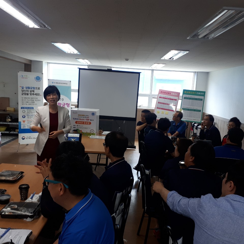 내 용 : 일생활균형(워라밸)을 통한 행복한 일터만들기, 가족친화 조직문화 확산을 위한 직장교육