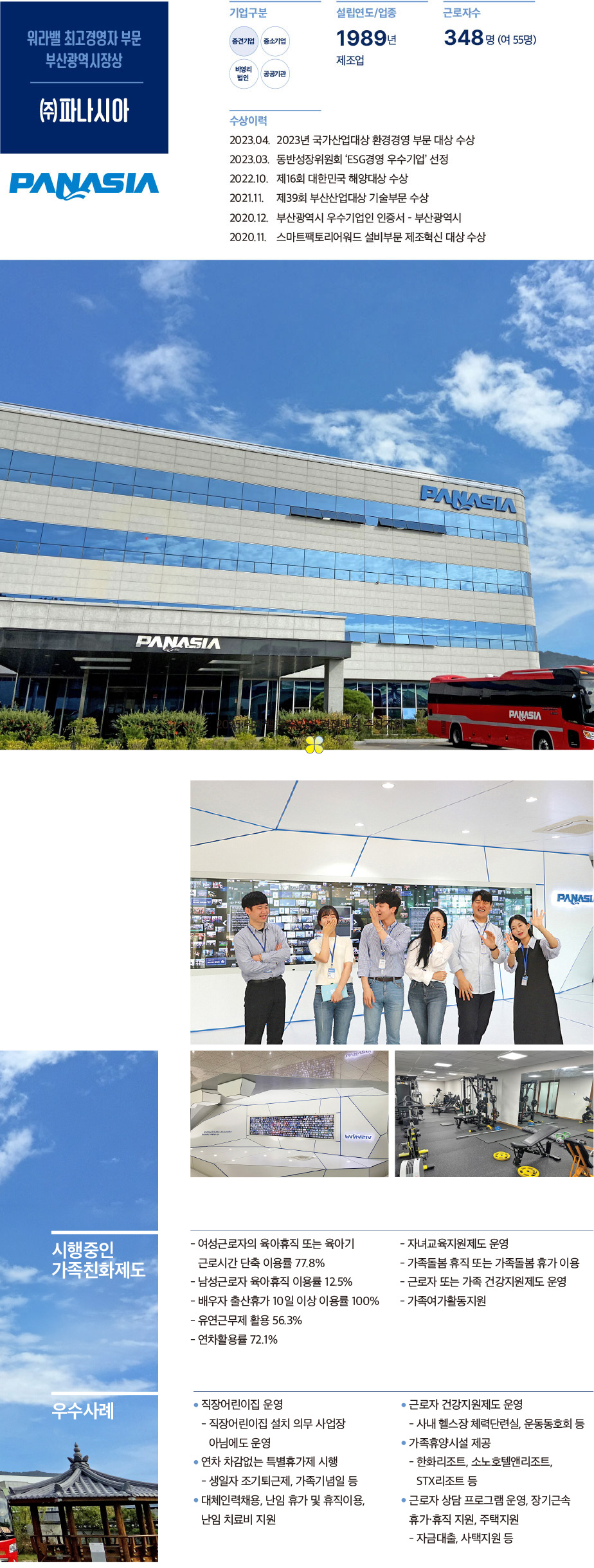 메인으로 이동 워라밸 우수기업 센터소개 가족친화인증 워라밸 우수기업 함께하는 일생활균형 센터소식 자료실 회원서비스 마이페이지 워라밸 우수기업 워라밸 우수기업 2025년 2025년 2024년 2023년 2022년 2021년 2020년 2019년 ㈜파나시아 ㈜파나시아 ㈜상지엔지니어링건축사사무소 한국조선해양기자재연구원 부산과학기술고등교육진흥원 주식회사 성공무역 워라밸 우수기업 워라밸 우수기업 워라밸 우수기업 2025년 ㈜파나시아 ㈜상지엔지니어링건축사사무소 한국조선해양기자재연구원 부산과학기술고등교육진흥원 주식회사 성공무역 2024년 한국선급 오리엔탈정공 유피체인 주식회사 영롱 부산컨테이너터미널 한미유압기계 2023년 ㈜휴넥트 ㈜유영산업 (재)부산문화회관 국제식물검역인증원 말랑하니 주식회사 삼원액트 주식회사 2022년 ㈜동화엔텍 한국자산관리공사 ㈜싸이트플래닝건축사사무소 미트리(주) 경성산업 주식회사 벡스코 2021년 ㈜상지엔지니어링건축사사무소 윌로펌프(주) 재단법인 부산광역시 부산국제교류재단 ㈜한진중공업 ㈜아이오티플렉스 2020년 ㈜부산롯데호텔 주식회사 DRB동일 (재)부산인재평생교육진흥원 ㈜아미글로벌 2019년 부산은행 삼원액트 이샘병원 ㈜유시스 한선엔지니어링 ㈜파나시아 페이스북 트위터 카카오스토리 즐겨찾기 인쇄